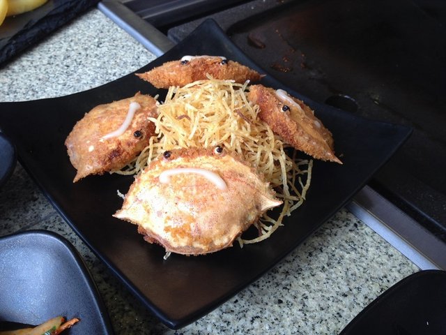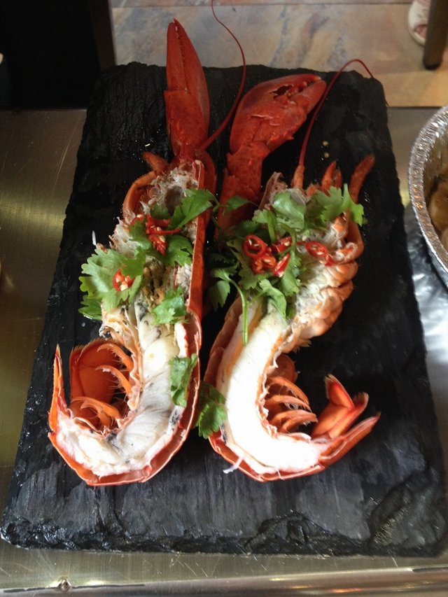 波士顿龙虾 :有些字样看见就喜欢,除了椰蓉,桂花,三文鱼(好像很多小伙伴都喜欢,之前知道竹君姐喜欢,今天小小大人物也很喜欢),这个龙虾也是让我喜欢的,或者说这次让我期待的源头就是这个吧,不过实际这貌似只是噱头吧,实际或者食物本身还有没有肉肉好吃,原因是个头不大,基本不够分的状态,我就只吃了钳子部分,烤制之后很干,幸好其他美食弥补了