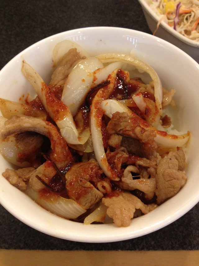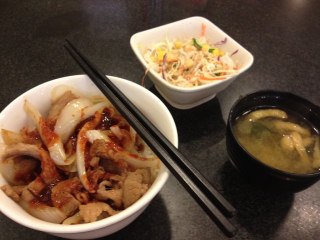 松屋 momohana0217等級42012-06-1218 瀏覽 關注 晚饭时间,看到他们家人不多,就进去了。 点了一份中份的烤肉饭套餐,还有一份蔬菜色拉和味增汤。 烤肉饭上的烤肉量不多,不过味道还不错,肉烤的很香,也很入味。 肉酱的味道不错,很下饭。洋葱稍微生了点,有点涩口。 蔬菜色拉,一般般,无功无过,味增汤里还放油豆腐,第一次看到。 以上食評乃用戶個人意見 , 並不代表OpenRice之觀點。讚好分享松屋 松屋 https://s.openrice.com/KtbT100DgS200檢舉 动感超人 中份的不太哎2012-06-13 回覆 張貼 評分4味道4環境4服務4衛生3抵食