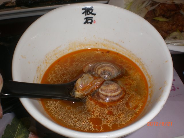 里面有蛤蜊和白菜,辣辣的蛮开胃的,之前吃了些油炸的食物,喝这个可以缓解,这道汤菜我个人比较喜欢,基本喝光了。