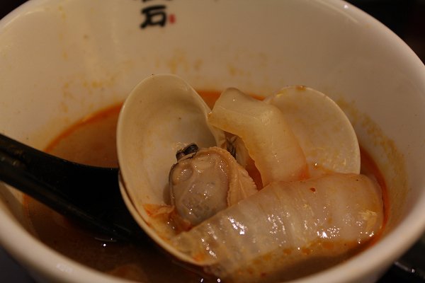 第六道是大白菜车罗辣汤(1人份)。有沙白和大白菜,汤底很辣,由于喉咙不适,不能喝多,同桌的MM一致认为超级好喝的,我只能看不能喝~那个伤心啊~下次来会再点!!