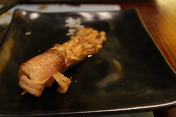 第三道菜是金针菇牛肉卷(2人1份)。卖相不错,口味清淡,一定要蘸酱汁。