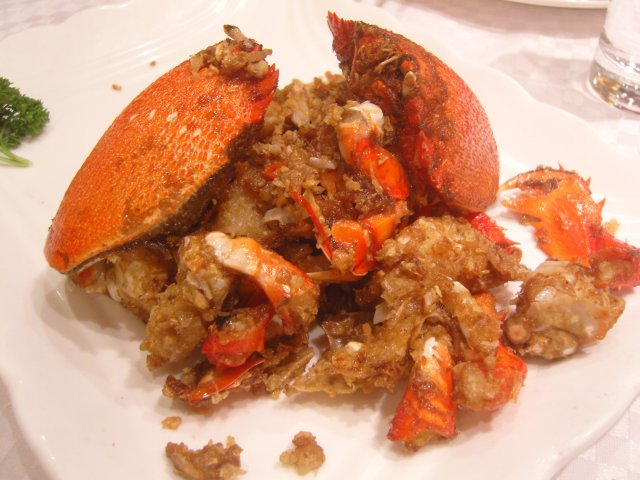 豉香皇后蟹是他家的特色菜之一,经过煎炸的皇后蟹的蟹肉其实一点也不嫩了,但是却很纹路感,吃在嘴里的感觉是一丝丝的,带着一点点的豆豉的香味,而且大部分的和腹部的蟹肉相连的蟹壳,已经脆到可以直接入口了。