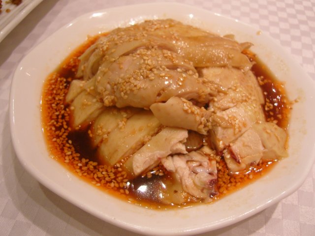 鱼香鸡肉算是冷菜,这个鱼香可不是鱼香肉丝的鱼香,它的酱汁一点也不辣,香味是来自飘满在酱汁上的白芝麻,鸡肉不肥不瘦,浸泡透酱汁后的味道很香嫩,而且这盆菜作为冷菜的分量来讲是实足了。