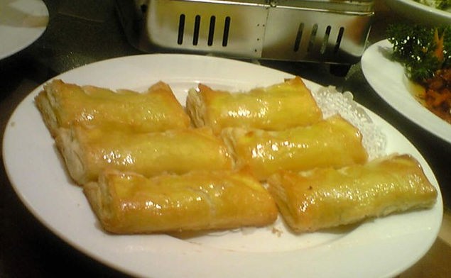 雪山包:上面刷着蛋酥,里面是鲜牛奶做的馅,特别松软,而且很香甜。现在写着写着我都想再吃一个了。。。。囧