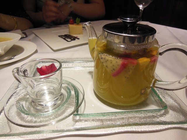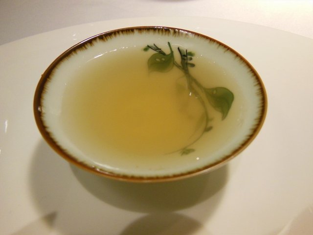 入座就是一杯微涩的柿子水用来涮口,其实在就餐结束之后,同样能有这样一杯用柿子叶熬煮的水做成的饮料就更加好了。