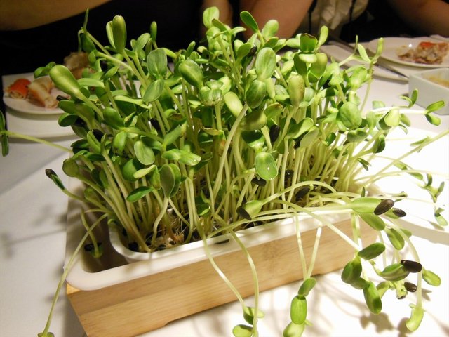 泰国爬豆,据说店里的蔬菜,都是店家自己无土栽培的,名字也都很好听,爬豆长的很像豆芽,前端还留着黑色的豆衣,烫熟之后的口感则是即清脆又柔嫩。