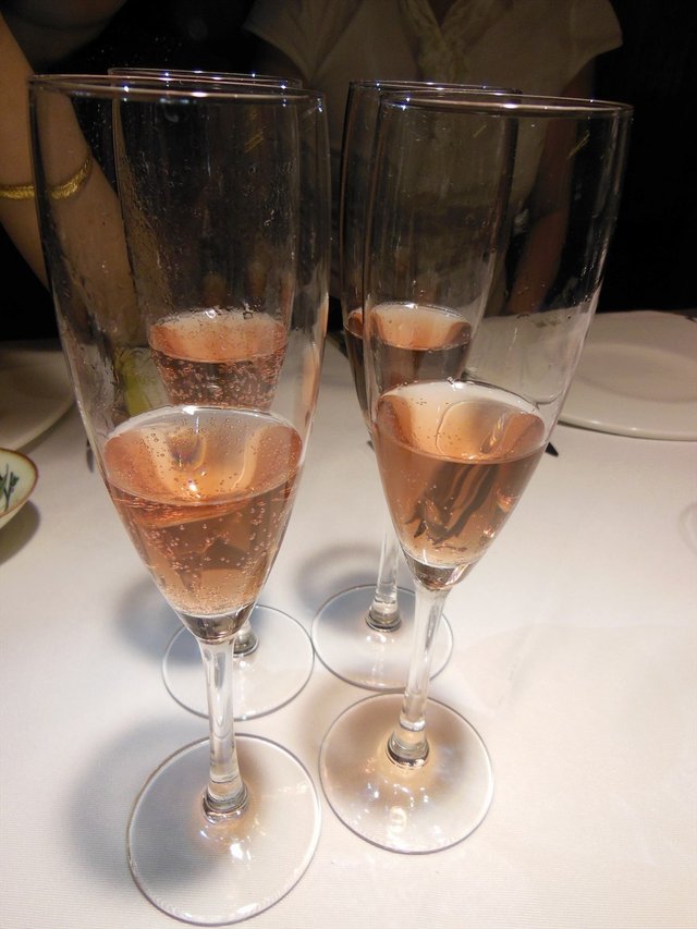桃红色的马天尼做开胃酒,微甜的口感让我忍不住两三口就把它喝光了,却忽略了其实餐前酒也是有度数的。