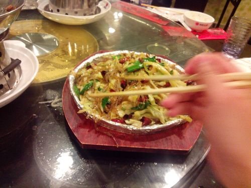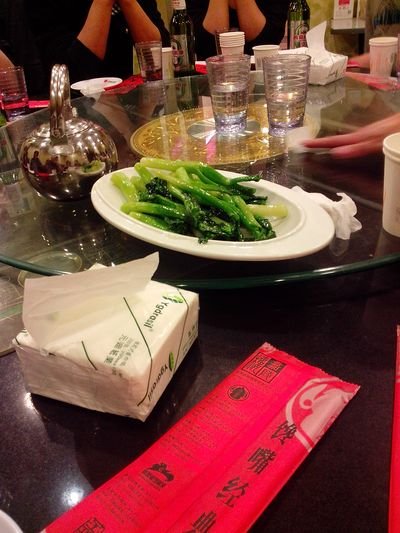 第一个上来的是青菜,不知道叫什么名字,味道清淡,苦味的,感觉吃着比苦瓜都苦,而且每根都蛮大的。