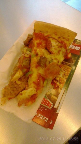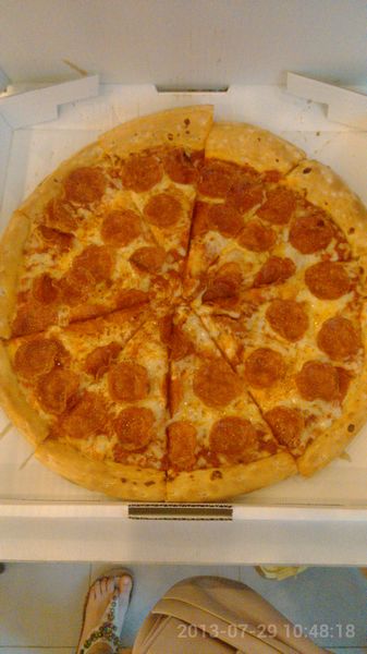 14寸的是腊肠披萨 是厚饼底 是我喜欢的 芝士也比较多 可以拉丝 腊肠给的也足