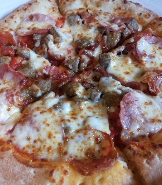 荤食天地(39元)单点的,是现在的活动,不定期39元的,正好赶上适合,味道超级好,大家都喜欢。肉料还是很足的,香肠,肉块,比萨酱,我想着以后就要自己学做这一款了!