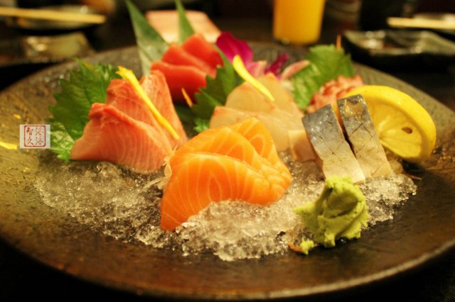 生鱼片拼盘:品种蛮多的,有三文鱼、金枪鱼、鲷鱼、章鱼,白金枪等,刺身切的蛮厚实的,论新鲜度还行,色泽略逊一筹,特别是三文鱼刺身口感还是很肥美~尚算满意。