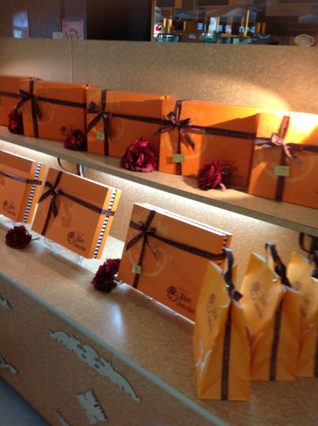 开在五番街的过道里,环境觉得一般啦,毕竟没什么门面的,我觉得这样的甜品店还是租一个小小的店面比较实在,毕竟他们家东西挺贵的,要是环境好的话会加分不少。整个柜台以橙色为主,还蛮亮的,难怪叫做蛋糕中的爱马仕呢,连基调都是一种颜色的。店员MM还蛮热情的,只要一过去就会介绍的。看到明珠卷和幸福袋评价很高,买了幸福袋,还有堂岛卷。幸福袋里装的是满满的幸福,里面的奶油蛮特别的,吃口不甜,但是奶味特别浓,不爱喝牛奶的估计吃不惯,就是一个太小了,随便几口就吃完了。堂岛卷和明珠卷差不多,但是里面有草莓,而且价格一样,那么果断堂岛卷。和虎皮卷差不多,特色还是奶油,赞,外面的蛋糕蛮香的。可惜价格真的是贵了