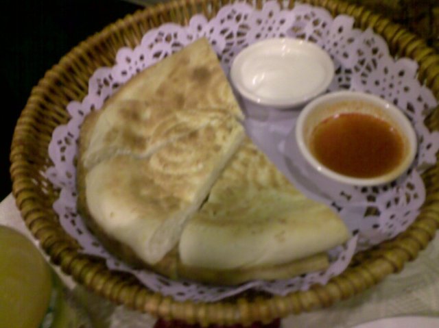 【馕】口感很正宗 有酸奶和辣油两种酱料给你蘸 我发觉和之前的番茄牛肉也很配哦 性价比很