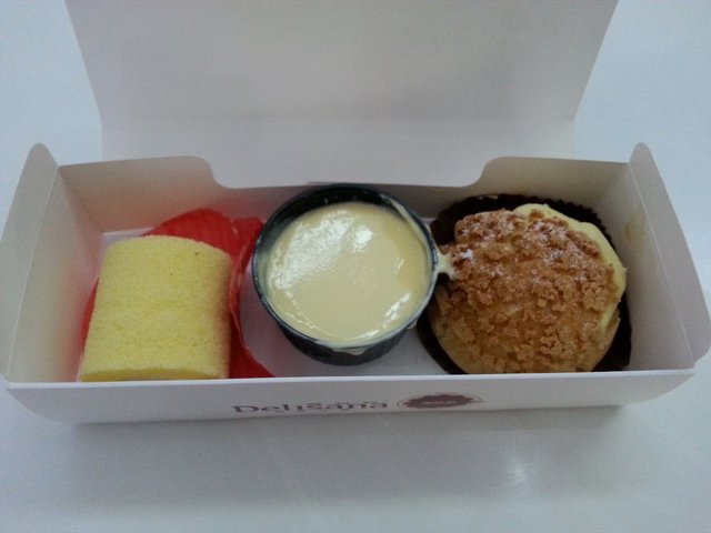 黄色的小卷,中间是奶油。卷的表面多孔,不是很润。不过味道清香。