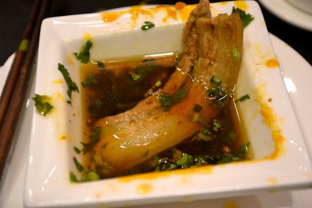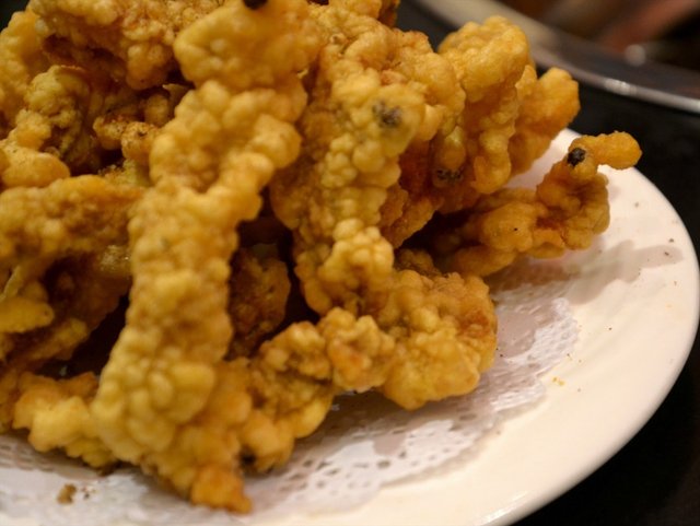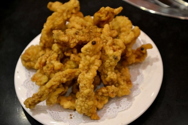酥肉上面有零星的花椒颗粒,陪上酥肉的外酥里嫩,非常香