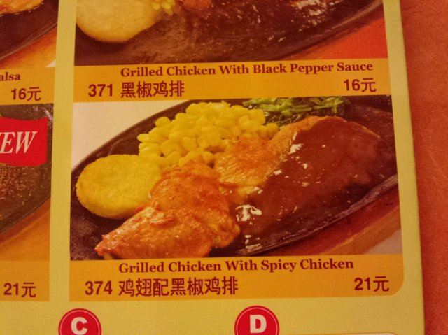 饭已经让我给拌了,味道很不错,有种芝士的香味,还有小的肉块来点缀。不过很馋的我,还是点了个鸡排,大块的肉,有一个鸡排和一对鸡翅,都不辣。放心吃。