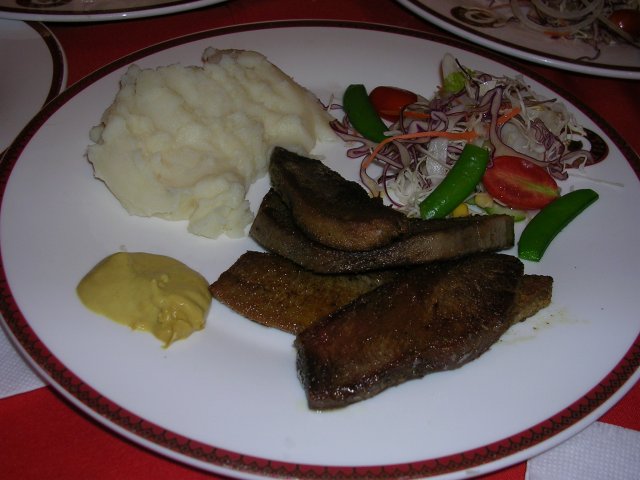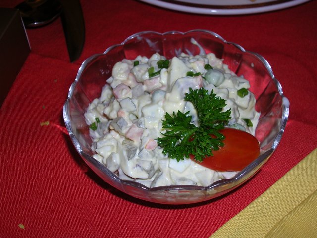 菜品都很有俄式特色,因为家乡的俄式西餐实在太地道了,所以不免在这里也会按照这样的标准来要求。不过可以说彼得堡还算没有让我失望,稍显不足的是罐羊有些不到位。其他的奶油杂拌,基辅鸡卷,特色猪排,牛排,沙拉都很不错,主要是在这样的一个节日吃一个气氛,所以味道到还是其次的。