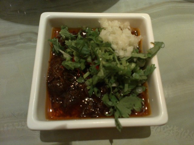 相间肥牛的量很大,肥瘦相间的纹理分明,不过这个牛肉一下锅,就会在锅里浮起一层沫子,我只有不停的用调羹捞走这些沫子,汤面,也变得有些浑浊了。这些牛肉开始吃的时候,口感不是很好,吃在嘴里的感觉不是嫩,而是有些渣的口感,但是味道上倒没有什么不对的地方。奇特的是,最后涮的牛肉,就没有沫子了,口感也变得柔嫩起来的,不知道是什么道理。