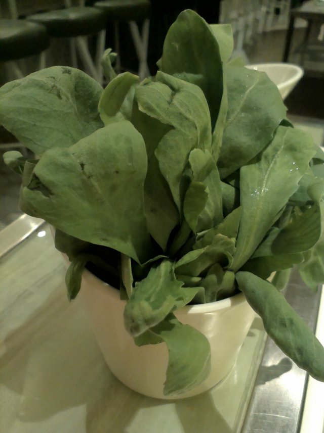 蔬菜我选择的是蓬蒿菜。因为在吃火锅里,很少会吃蓬蒿菜。他家的蓬蒿菜,个头比家常吃的小一些,在火锅里涮过之后,吃口仍旧是很清脆,觉得自己选这个蔬菜是选对了。