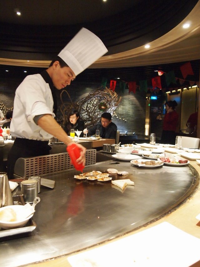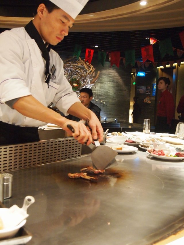 前前后后一共去过两次的铁板烧自助餐厅,其实我离五道口店更近一些,但是感觉朝外这家预约什么的会更加方便一点儿,离着地铁也非常的近,所以还是去了朝外两次。不定期会出团购,168元的价格还是相对而言性价比高出不少的。第一次去的那个招待师傅明显要好于第二次去的那位,说话特别有礼貌,最后放那把“火”的时候还会祝大家工作、事业红红火火,也正是因为第一次的好服务态度,才会有第二次再去的经历。说说去了两次感觉味道不错的菜品吧,最喜欢的就是奶香凤尾虾,第一次去的时候要的少了,后来再加单就到时间不给续了很是遗憾,所以第二次就弥补了这一点,直接第一回合就要了20只,一次性吃的够本。虾子的口感非常的鲜嫩,搭配了浓浓的奶香,上面点缀了芝麻提香,脂肪含量也低好吃极了。各种牛排的口味我其实实在是分布太出来的,唯一有印象的肯定就是菲力牛排了,唯一会带大骨头的牛排肉,纹理非常明显,肉汁也比较丰沛一些,比较推荐的。黑虎虾应该算是这个价位里虾子个头最大的一款了,虾肉饱满、紧实,料理出来的口感也比较符合大多数人的口味。刺身方面三文鱼算是比较中规中矩的吧,北极贝的个头非常的小巧,所以一次性多要一些是完全没有问题的,一份是三片,可以多点几份。最后再要个火焰冰激凌,一顿饭吃的刚刚好~