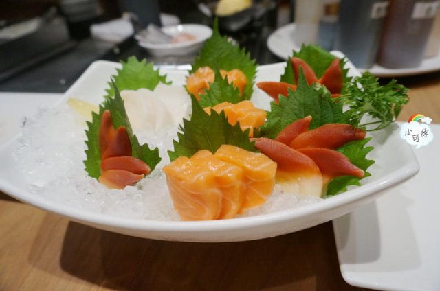 三文鱼拼北极贝。哇咔咔,北极贝是偶的最爱,三文鱼是朋友的至爱。三文鱼很肥厚。北极贝虽然不够大片,但是味道很新鲜,QQ的韧韧的很好吃,加点了很多份,今天北极贝算是吃过瘾了。铁板烧开始了,师傅现在盘子里倒入了一些调料,觉得味道不够时可以自己蘸着点吃。好像有黑胡椒和孜然。