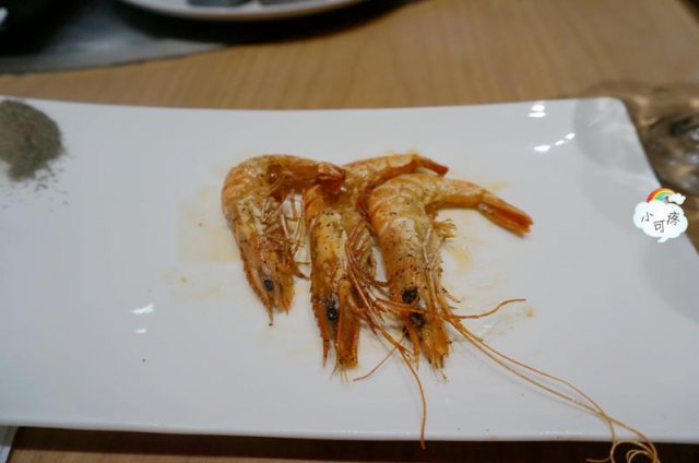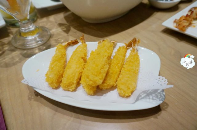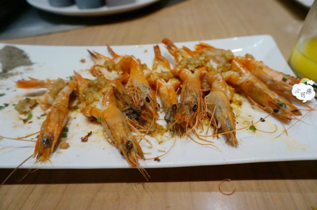 铁板大虾。虾的个头蛮大的。虾煎的QQ韧韧的很好吃,后来还加了很多单。 炸虾棒。虾肉裹了很多糊炸制的,感觉裹得糊有些多了。不如铁板大虾好吃。