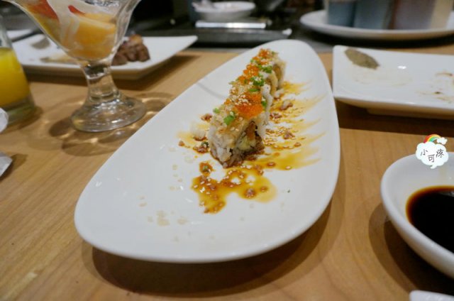 加州卷,上面有鱼籽里面裹有虾肉,寿司卷的味道还可以,但是吃铁板烧自助真不应该点寿司,到后面实在吃不下了啊。