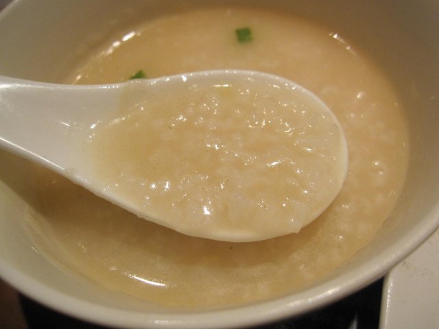 【潮汕式挪威三文鱼骨煲粥】没见有任何骨刺,却很美味的一碗粥,很新鲜的味道