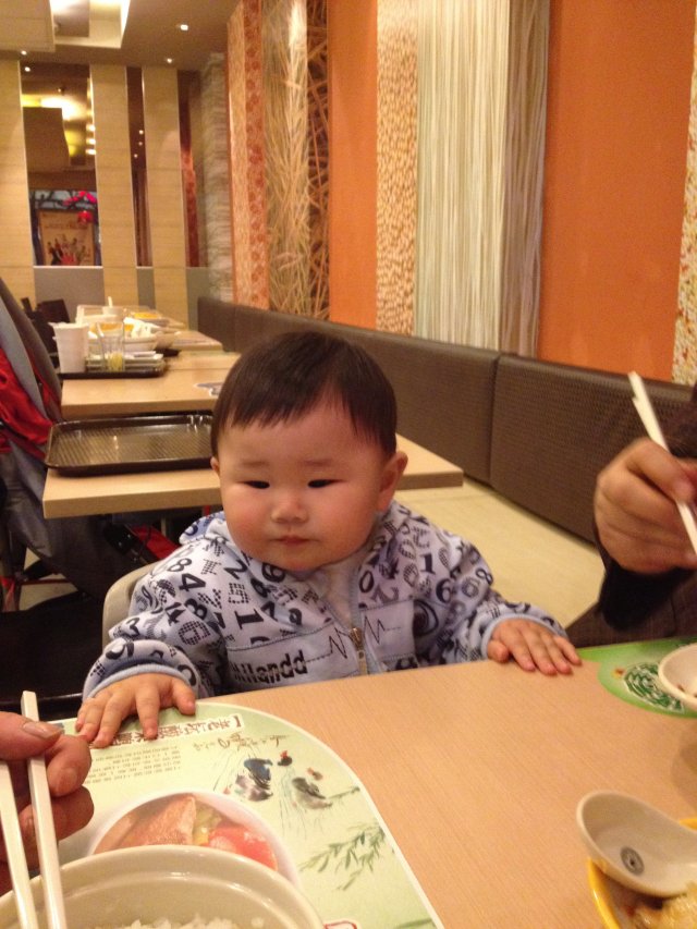宝宝一直没有太平过,筷子、调羹、汤勺、个个都要抓。卤肉饭来了给宝宝尝了口,终于太平了。肉熟烂、卤汁料多拌饭刚好,怪不得宝宝小嘴不停也是个小吃货。抄手原来是冷馄饨不过拌料很辣,原来抄手是四川的小吃。油条爸爸点得,够大、松脆、宝宝第一根油条是从这里开始的。牛筋牛肉面给老爸的,他老人家牙口不好。面要求下烂了,牛筋牛肉也是先问过了很熟烂。老爸津津有味吃了精光,难得啊!