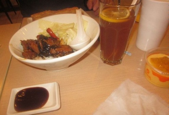 套餐里包括两杯饮料,一个三杯鸡饭,一个牛肉面,还有一个布丁,还是挺不错的。