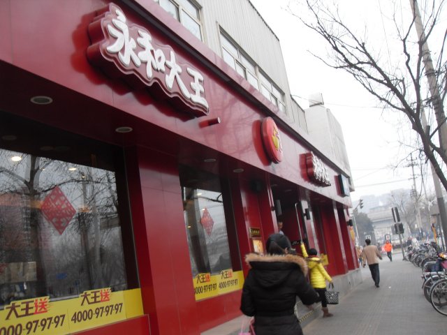 下午和朋友去金五星逛逛,出来在这里吃的饭。这家永和大王位于海淀区学院南路37号超市发四道口店四道口西北角,店面不小,内部干净简洁。喜欢吃他家的牛肉面,感觉实惠有很大碗,一大碗端上来热气腾腾的,还有不少牛肉,牛肉感觉挺新鲜的,肉质有嚼劲入味好吃,但是不塞牙,牛肉汤也非常的好喝,面条筋斗弹牙,让人回味,加些辣椒和少许醋就更加美味了