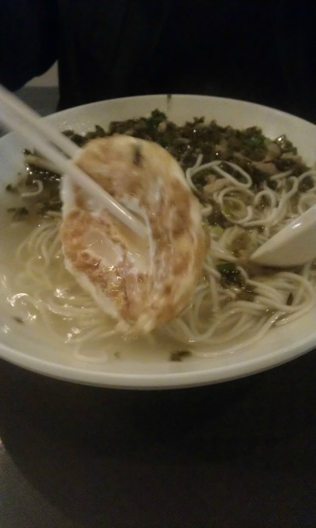 1、雪菜肉丝面:13元,份量适中,面条不错,挺筋道的,里面的雪菜也不咸正好,配面吃挺下饭的,还有一只煎蛋,给老婆了,汤头清淡,好喝。
