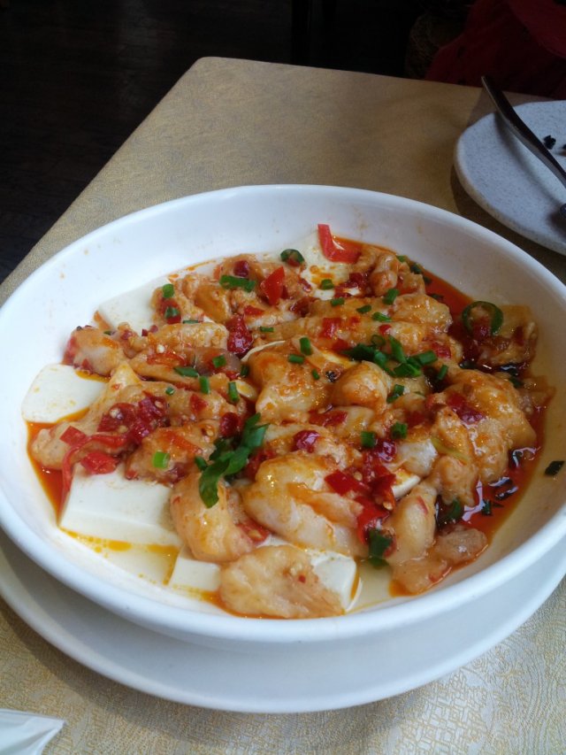 泰椒蒸龙利鱼:49元,量也很大,鱼片和豆腐的组合,有点辣。