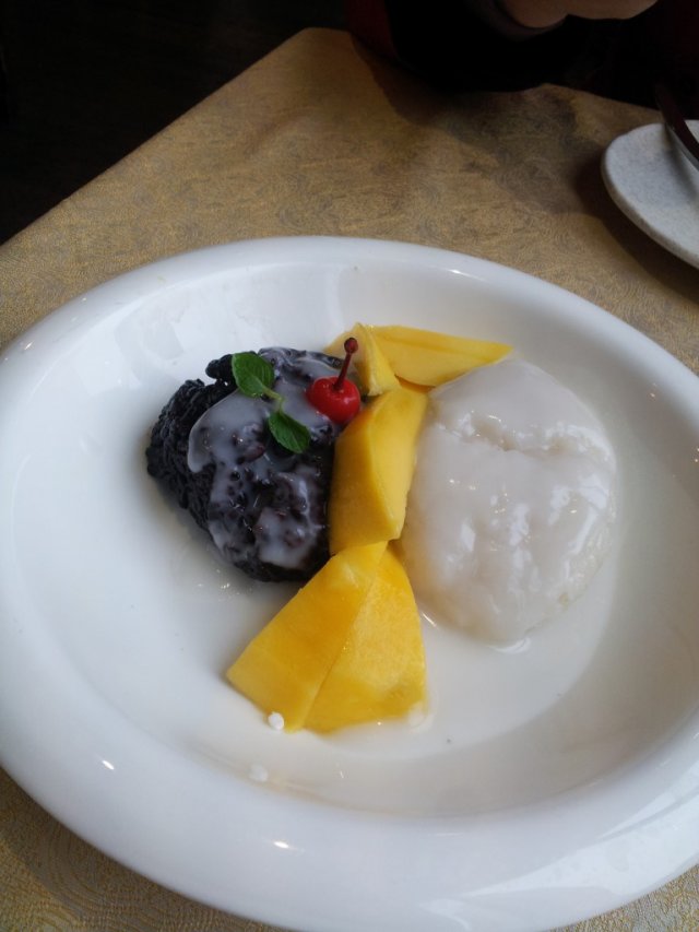 芒果糯米饭:18元,妈妈吃了,居然糯米是搜的!!坏的!!!就叫厨房换一份,结果没有了,看来糯米都坏了。