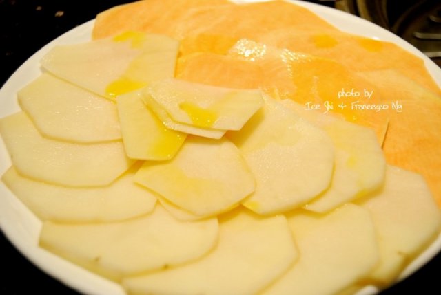 烤土豆地瓜拼盘,这个看烤功的,一定要多烤些时间,但不能烤焦,那样的口感,吃在嘴里就像薯片一样,是脆脆的。。。