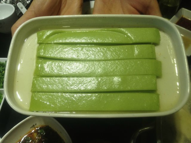 绿色毛肚,一直执行七上八下的原则,所以涮出来不会老