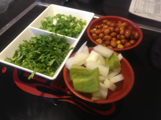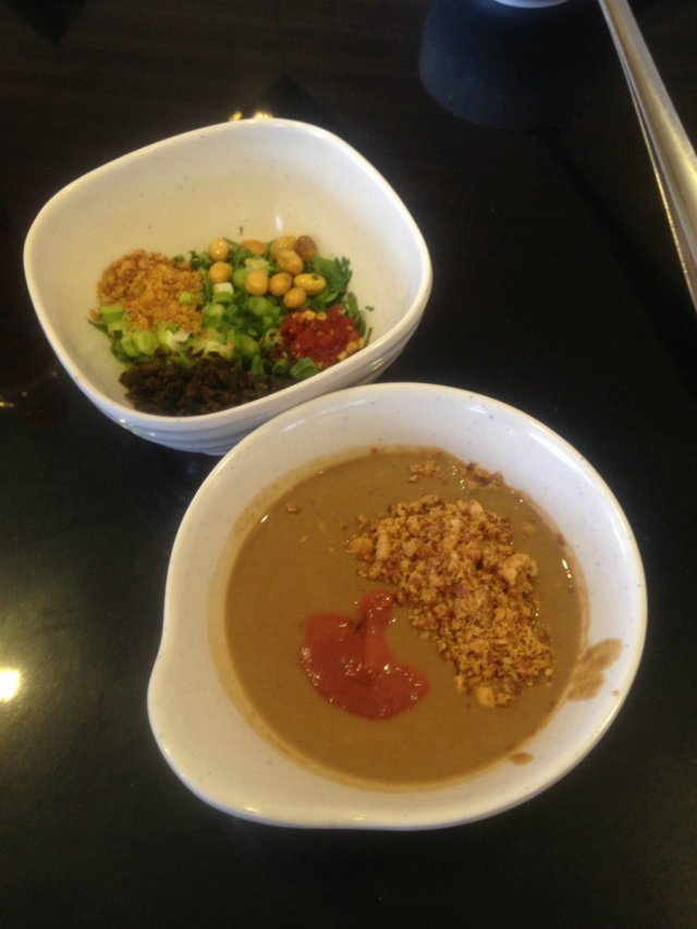 小料是自助形式的,他家还专门配有干料,是沙姜蘸料和红椒蘸料,我还是比较习惯吃麻酱的料