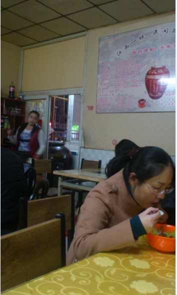 他家的汤是提前煮好装好的,放在一个超大的缸里,缸里有一个个的小瓦罐,里面生着火,保持温度。