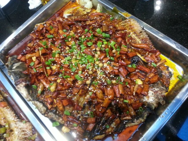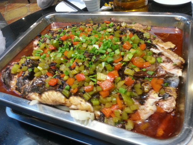 香辣味的烤鱼也是很经典的,鱼一上桌就看到上面满满的红辣椒,香气扑鼻,非常的诱人。