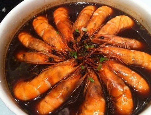 【独家鲜味煮虾】虾很新鲜,很入味,底下铺的粉丝就太过咸了