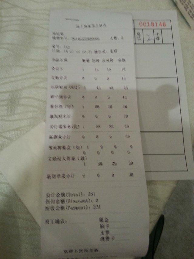 没啥特别的海鲜 ORiceblue等級42015-01-0617 瀏覽 關注 在龙之梦找地方吃饭,这家店看上去很清净,随便吃点海鲜。 黄衫鱼,78元2条,鱼肉很嫩,这个菜最好吃。 石锅扇贝,45元6个,比较普通。 两个特价菜,葱油海蜇皮,9元,味道一般吧。文蛤浸芥菜,29元,也很普通。 薏米水,55元1扎,把里面的薏米也都消灭了,清热祛湿的。 会员卡,15元,一共花了231元,没什么特色的餐厅。石锅扇贝葱油海蜇皮文蛤浸芥菜黄衫鱼薏米水文蛤浸芥菜以上食評乃用戶個人意見 , 並不代表OpenRice之觀點。讚好分享没啥特别的海鲜 海上渔家 https://s.openrice.com/KtbT100rM4E00檢舉 張貼 評分4味道4環境4服務4衛生4抵食用餐途徑堂食人均消費¥120 (晚餐)