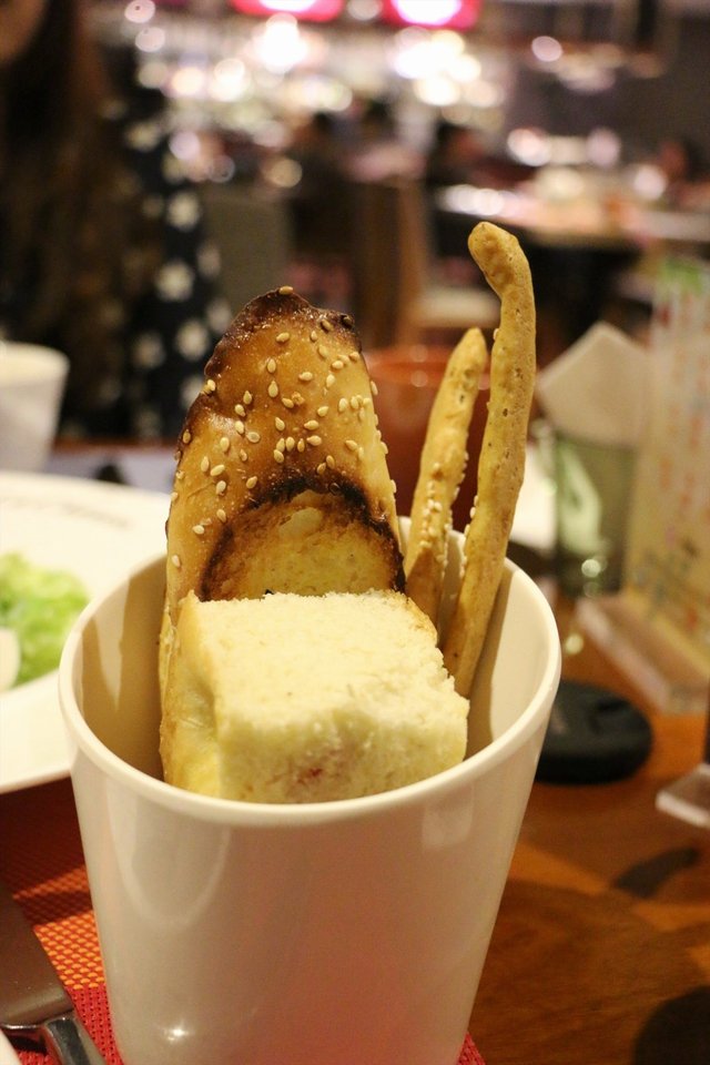 餐前自家烘焙面包篮,面包有三四种,不过都比较硬,就当餐前零食啃了一点,长长的脆脆的棍子还不错。