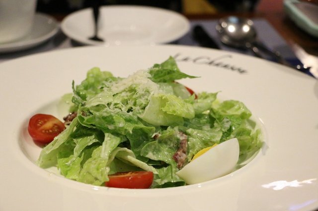 凯撒沙拉,看起来不多,但是挺耐吃的,沙拉酱不是特别多,比较清淡的口感。