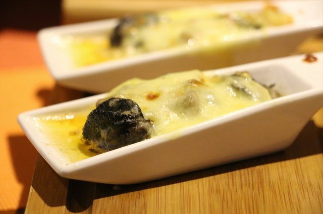 蒜香芝士烤蜗牛,法餐的代表菜,虽然对于蜗牛一般都会敬而远之的,但是为了尝尝还是点了一份。上来有三小盘,每盘里面一个蜗牛,然后是满满的芝士和土豆泥。蜗牛不是特别大,肉质好像也不太嫩,反正这是我自己的口感。不过好爱吃芝士土豆泥!