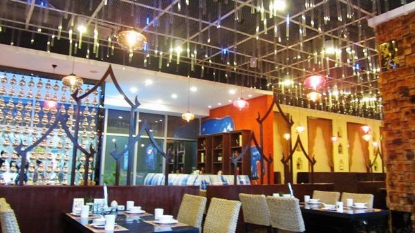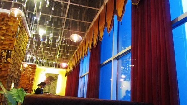 餐厅以泰式文化色彩为装修主题,采用的是仿真动感地面,屋顶采用星空垂吊灯,打造罗曼蒂克的就餐环境