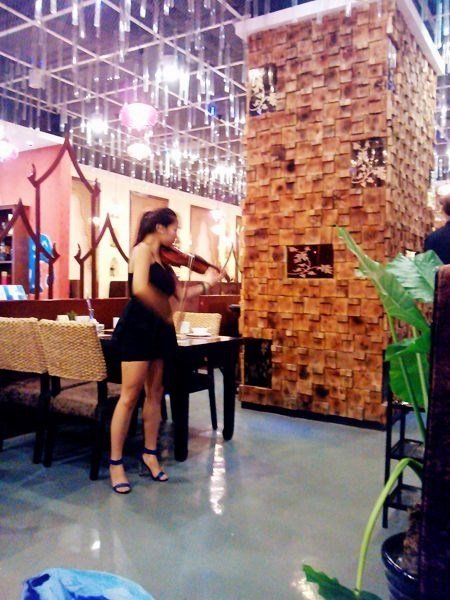 就餐中还有美女小提琴现场演奏,整个就餐环境显得是相当浪漫
