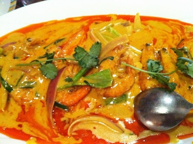 咖喱虾,我真心很喜欢,咖喱的味道很浓郁,而且很合适。虾的个头也很大,吃起来非常不错,而且用咖喱拌饭是非常的好吃!赞一个哦!