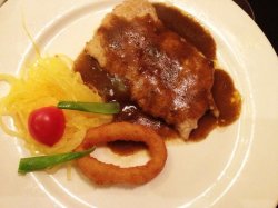 猪排:2份,原本对这个比较有期望,结果这个猪排平平无奇,肉很紧,比较淡,没有肉汁,蘸着黑胡椒酱,还算可以