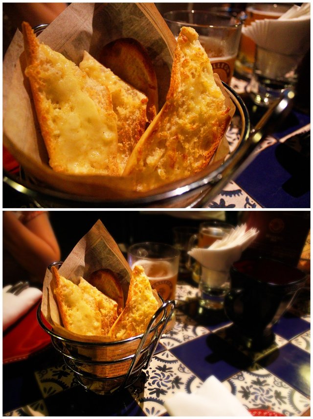 这道是把烤好的芝士条面包对切,面包表层很酥,内层蛮有韧劲。