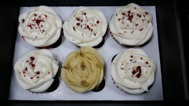 紅絲絨紙杯蛋糕 :卖相超级赞,白奶油较厚略酸,纸杯里蛋糕是红色的,感觉加入了玫瑰花汁,不明白为什么推荐率这么高,味道怪怪的不喜欢;